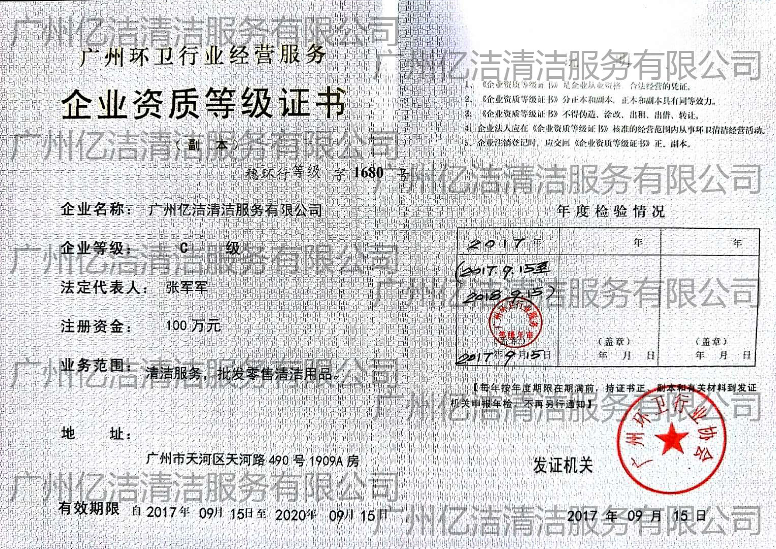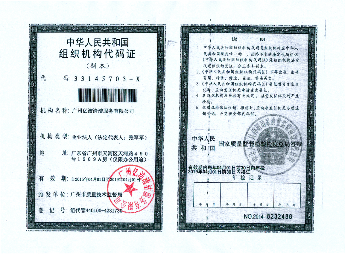 廣州億潔清潔服務(wù)有限公司是經(jīng)廣州市工商行政管理局批準(zhǔn)成立的(注冊(cè)資本:100萬元人民幣)。具有獨(dú)立法人資質(zhì)。公司成立2015年,公司具備完善的管理體系和高素質(zhì)管理隊(duì)伍,擁有特種技術(shù)人員33名,保潔服務(wù)人員上萬名,覆蓋廣州市,能及時(shí)調(diào)配并快速投入高效運(yùn)行。我們的每個(gè)員工都經(jīng)過公司的嚴(yán)格篩選,嚴(yán)格培訓(xùn),定期培訓(xùn)后持證上崗以保證服務(wù)品質(zhì),保障客戶的權(quán)利,利益,形象等不受損失。 廣州億潔清潔公司是一家設(shè)備齊全,技術(shù)強(qiáng)大的綜合型清潔服務(wù)公司,為客戶提供完善服務(wù)尊定了堅(jiān)定的基礎(chǔ)。 司于2010年全面推行了ISO9001質(zhì)量管理體系認(rèn)證和ISO14001國際環(huán)保體系認(rèn)證。先后獲得廣州高層建筑外墻清洗維修作業(yè)【安全資質(zhì)證書】、【廣州環(huán)衛(wèi)企業(yè)等級(jí)證書C級(jí)資質(zhì)】、廣州疾控中心頒發(fā)的【四害消殺服務(wù)資質(zhì)證】、【空氣治理A級(jí)資質(zhì)】、中國石材協(xié)會(huì)頒發(fā)的【石材資質(zhì)B級(jí)資質(zhì)】等。 廣州億潔清潔服務(wù)有限公司致力于打造專業(yè)、實(shí)惠、靠譜的保潔服務(wù)公司,把專業(yè)的事情交給專業(yè)的我們,您放心! 億潔清潔服務(wù)項(xiàng)目: 廣州保潔服務(wù):新建樓宇、別墅、酒店、醫(yī)院、辦公樓、賓館、企事業(yè)單位廠房竣工后開荒及裝修后精細(xì)保潔.工程保潔服務(wù)。 廣州物業(yè)托管:為廣州市各大企事業(yè)單位、賓館、政府機(jī)關(guān)、小區(qū)物業(yè)、酒店及廠房提供專業(yè)化保潔、園林、設(shè)施維護(hù)等管理服務(wù)。 廣州高空作業(yè):高空玻璃幕...[詳情]